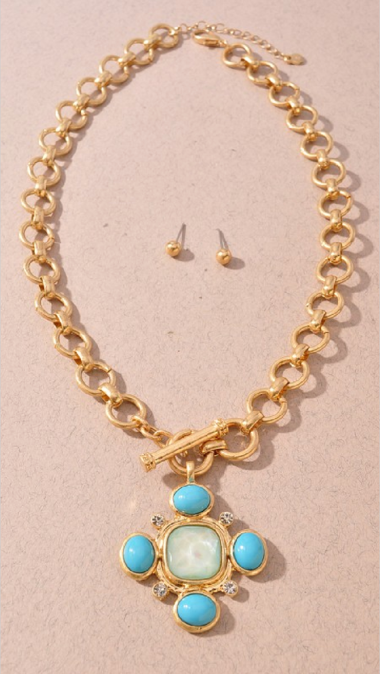 • Color: Gold Chain / Blue Stone