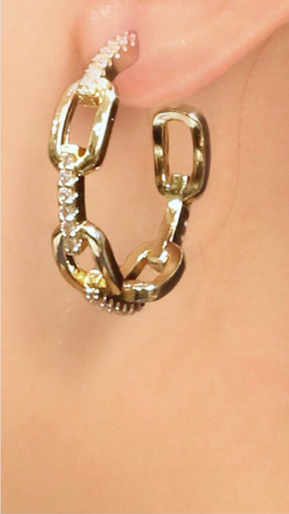 • 14k Dipped Linked Hoop Cz Paved Post Earrings